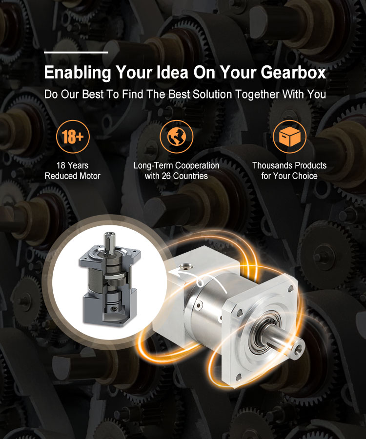 Disponível apenas como redutor ou combinado com a linha de motores BLDC, PMDC, motores de passo ou servomotor Inovance. Para mais informações e suporte de dimensionamento entre em contato conosco em sales@ichmo.com